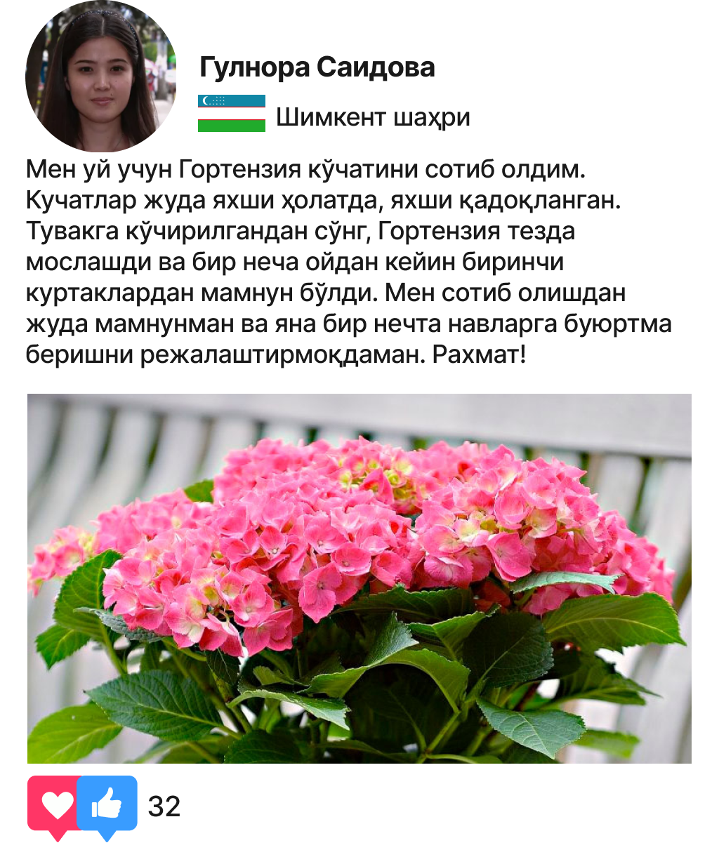 Ўзингизнинг эксклюзив гортензияларингизни ўстиринг ва ҳар куни чиройли гуллардан баҳраманд бўлинг!