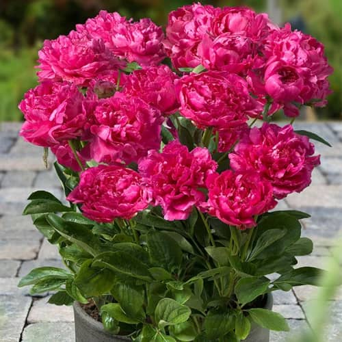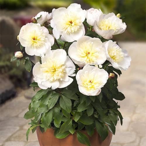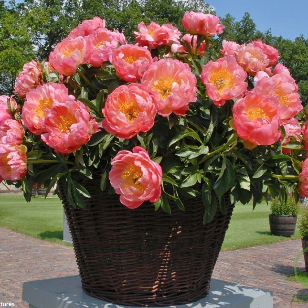 Контейнерларда пионларни сотиб олиб, сиз биринчи гуллаш учун кутиш вақтини бутун йилга қисқартирасиз. Ҳар бир контейнер ўғитлар, гўнг, ва кул қўшилиши билан озиқлантирувчи субстрат билан тўлдирилади. Яъни, пионнинг муваффақиятли ўсиши ва ривожланиши учун барча шарт-шароитлар мавжуд.